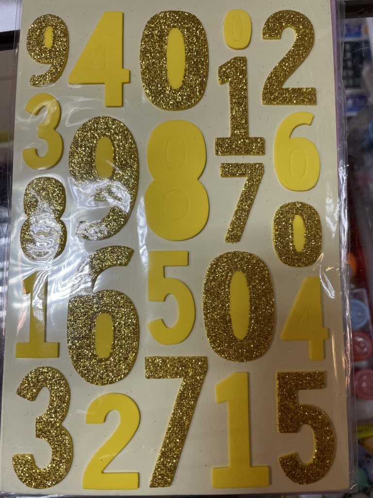 Lipdukai skaičiai raudonos, geltonos spalvos su blizgučiais