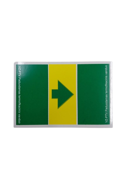 Lipdukas Paduodamas termofikacinis vanduo 90x60mm.