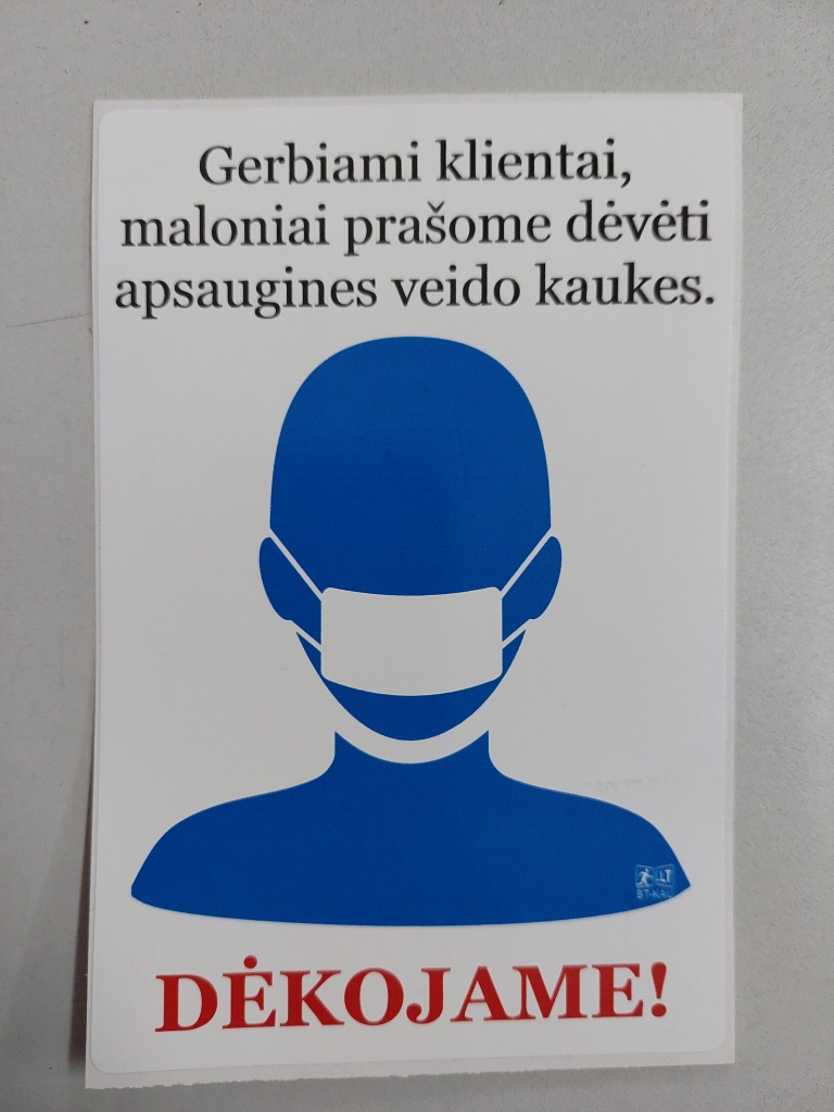 Lipdukas Prašome dėvėti apsaugines kaukes 100x150mm.