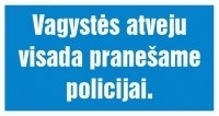 Lipdukas "VAGYSTĖS ATVEJU VISADA PRANEŠAME POLICIJAI" 100x200mm