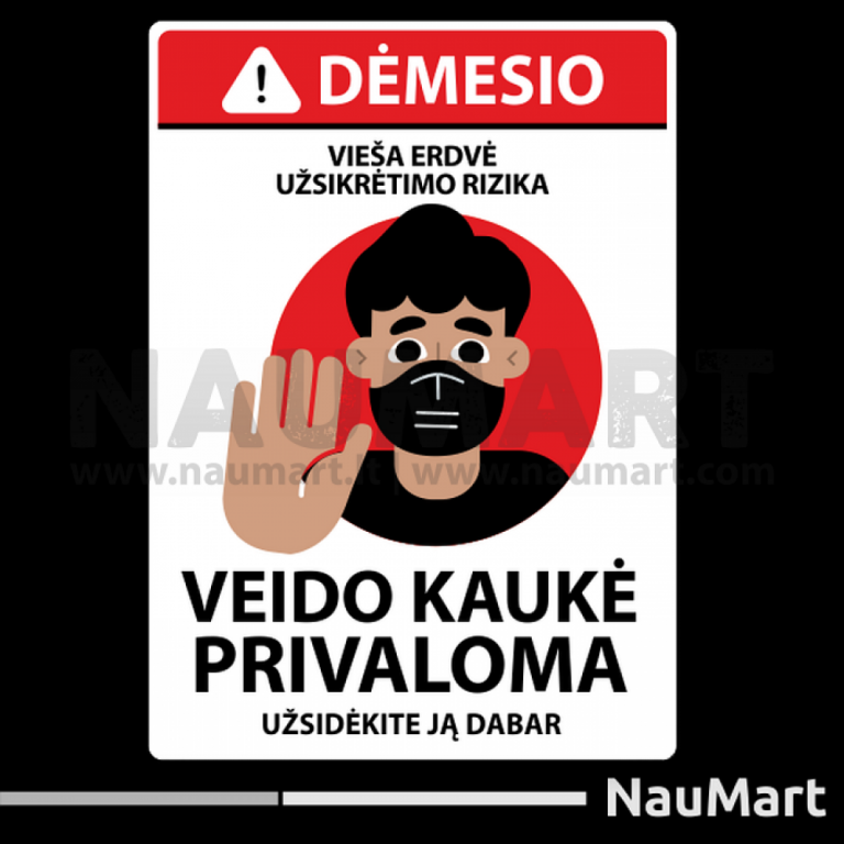 Lipdukas VEIDO KAUKĖ PRIVALOMA DĖVĖTI 130x180mm
