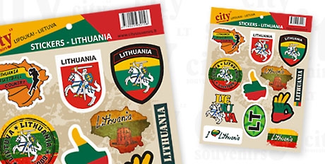 Lipdukų rinkinys – Lietuva, kurį sudaro 12 įvairių lipdukų, išdėstytų lape. Lapo išmatavimai: 185x250mm.