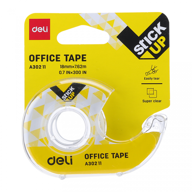 Lipni juosta 45 mic 18 mm x 7.62m su nukirpimo laikikliu Deli