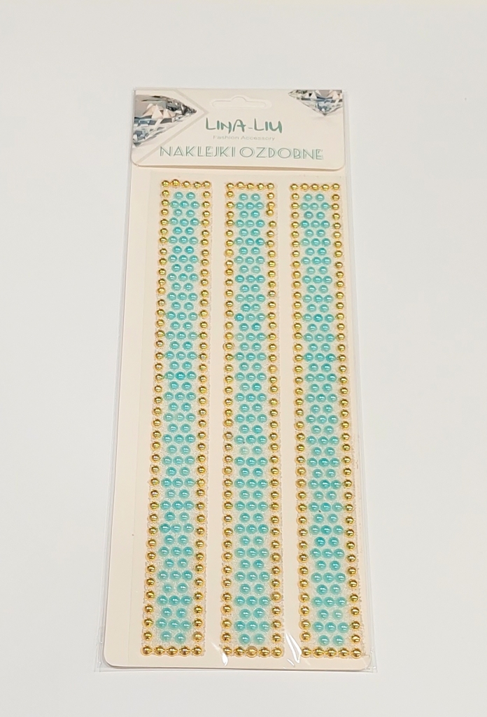 Lipni karoliukų juosta, šv.mėlyni ir aukso spl.