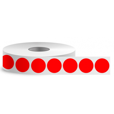 Lipnios etiketės, 1-35x35/40-1000 etk., apvalios, raudonos sp.