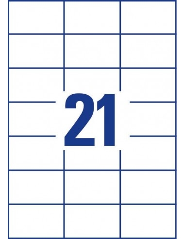 Lipnios etiketės A4, baltos, 70x41mm viename lape 21vnt,10 lapų