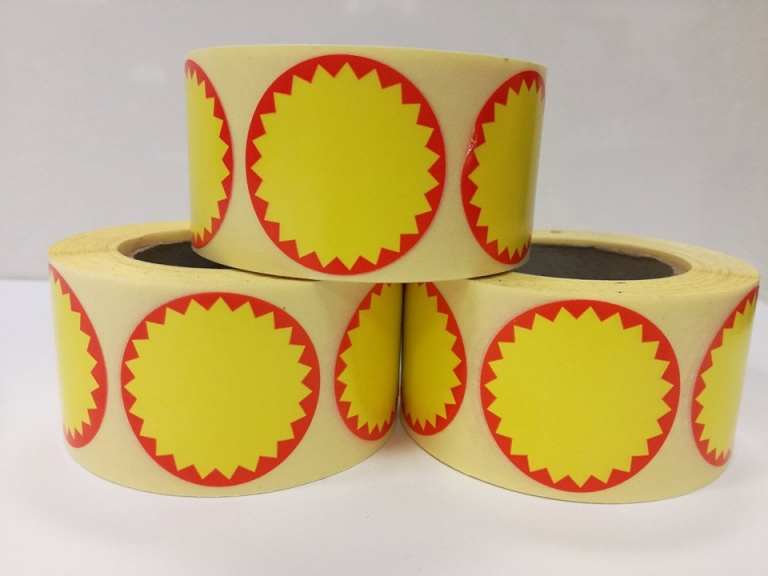 Lipnios etiketės apvalios 34mm - 500vnt., raudona - geltona