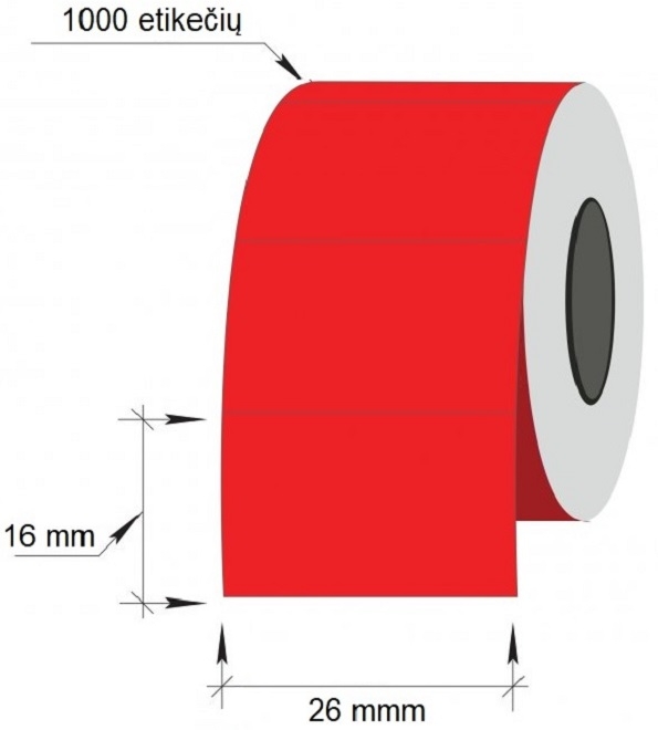 Lipnios etiketės į kainų ženklintuvus, 26x16mm, raudonos spalvos