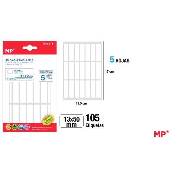 Lipnios etiketės MP 13x50mm baltos 105vnt