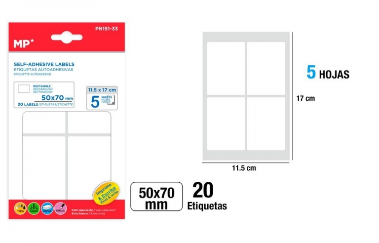 Lipnios etiketės MP 50x70mm baltos 20vnt