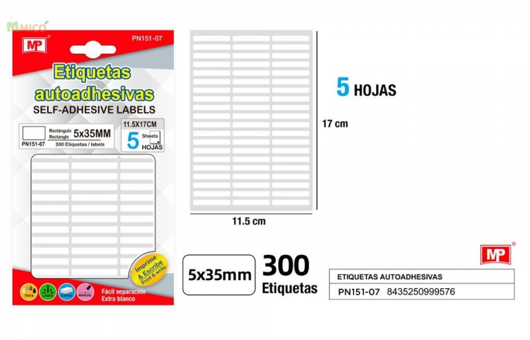 Lipnios etiketės MP 5x35mm baltos 300vnt