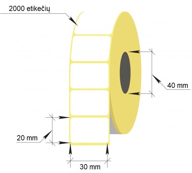 Lipnios termo etiketės, 30x20mm , rulone 2000 vnt.
