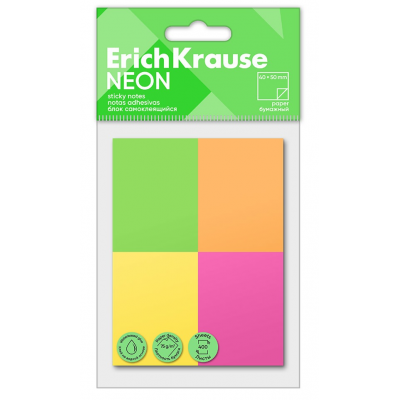 Lipnių lapelių užrašams rinkinys NEON, ErichKrause, 40x50mm, 4 neoninės sp. x 100 lapelių