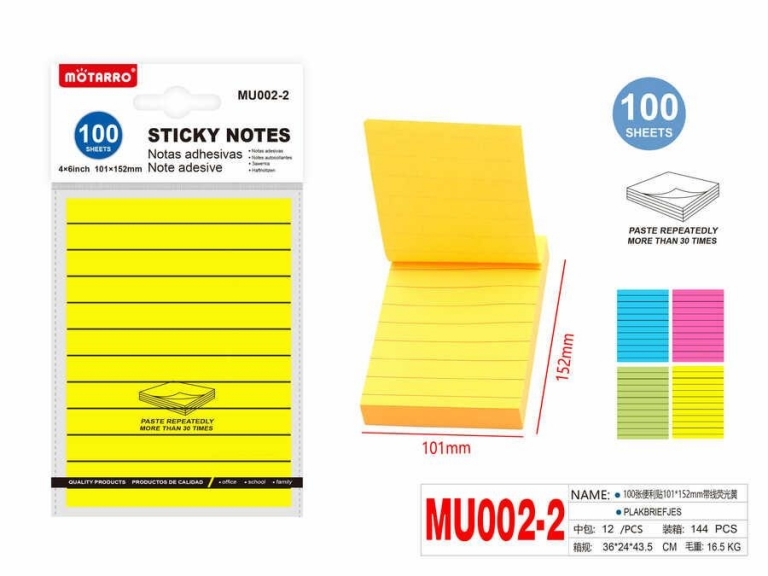 Lipnūs lapeliai užrašams 101x152mm 100l linija geltonos sp MOTARRO