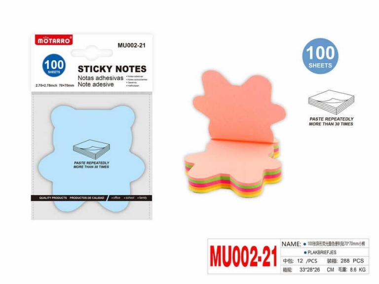 Lipnūs lapeliai užrašams MEŠKA 70x70mm 5sp x 20l MOTARRO
