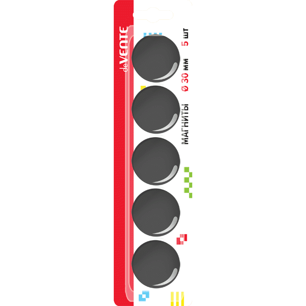 Magnetai deVENTE, 30mm, 5 vnt, juodos spalvos