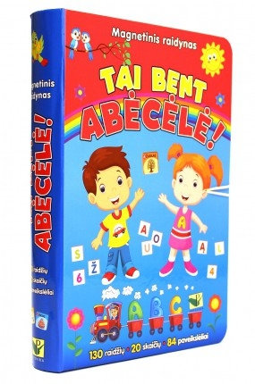 TAI BENT ABĖCĖLĖ! – sušuksite pravėrę šią knygos pavidalo dėžutę! Magnetinį raidyną sudaro 130 magnetinių raidžių kortelių, 20 magnetinių skaičių kortelių ir 84 magnetiniai paveikslėliai. Lentoje iš magnetinių raidžių galėsite sudėti paveikslėliuose pavaizduotų daiktų pavadinimus, savo vardą, pavardę, adresą ir daugybę kitų žodžių, o gal net sakinių. Linkime smagios kelionės į pažinimo šalį!