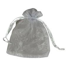 Maišelių dovanoms rinkinys 10 vnt. – sutraukiami, organza, sidabrinės spalvos, 7x10 cm (PENWORD)