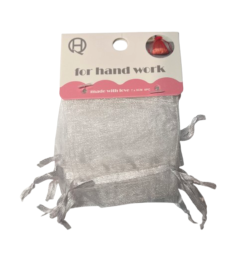 Maišelių dovanoms rinkinys 6vnt. 7x9cm., sutraukiami, organza baltos sp