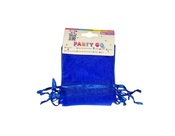 Maišelių dovanoms rinkinys 6vnt. 7x9cm., sutraukiami, organza mėlynos spl.