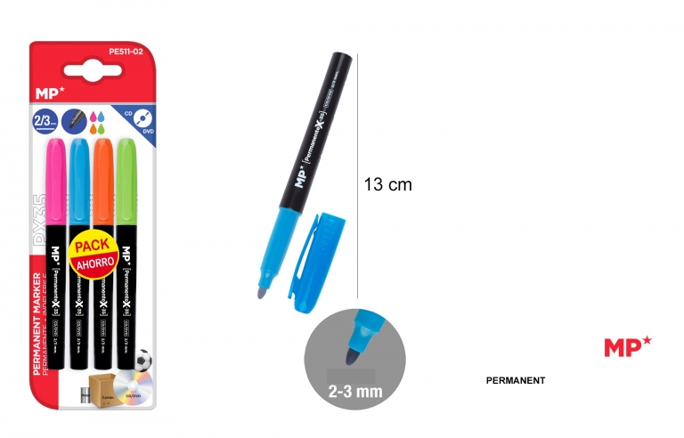 Markerių permanentinių rinkinys MP 4vnt 2-3mm smailiu galu