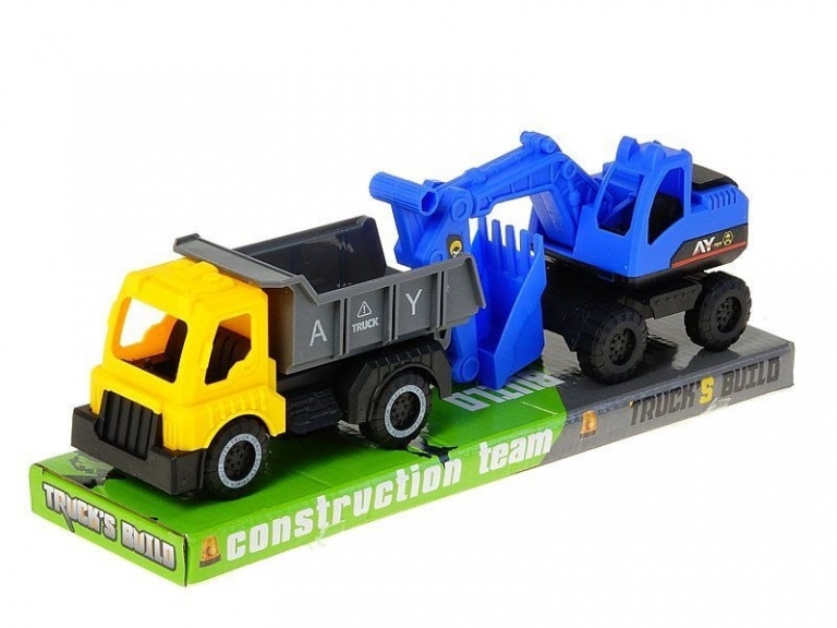 Mašinėlė su priekaba ir kaušu (2 vnt.) – puikus pasirinkimas aktyviems vaikams!