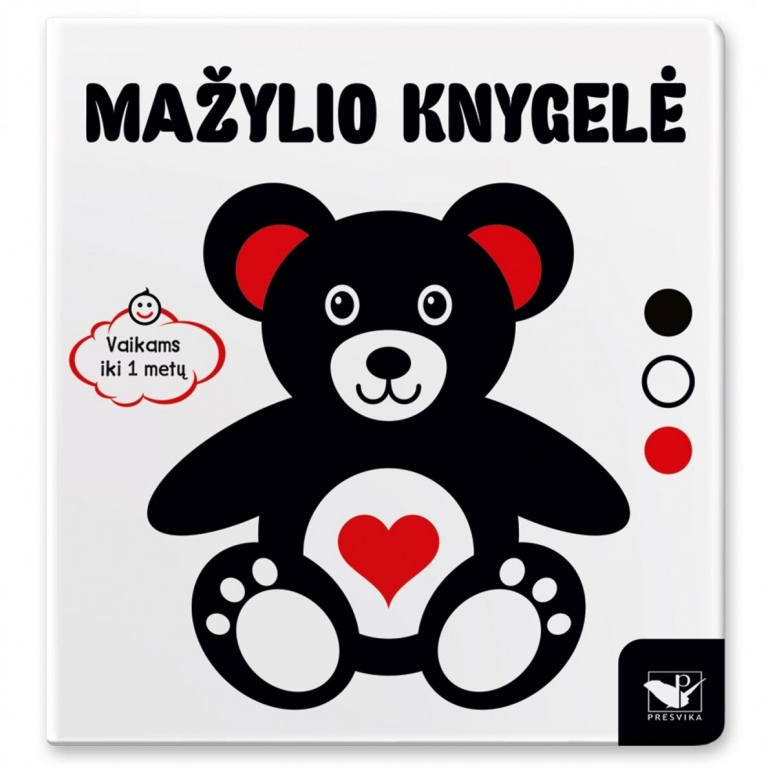 Ši baltos, juodos ir raudonos spalvų knygelė skiriama kūdikiams, mat jie pradžioje šias spalvas geriausiai regi. Mielos iliustracijos žadins mažylio susidomėjimą, smalsumą, džiaugsmą, o kartu lavins įvairius pojūčius, emocijas, pažintinius gebėjimus.