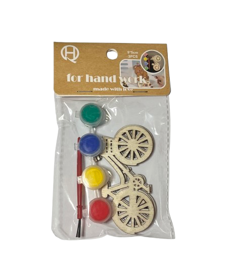 Medinė dekoracija Dviratis su dažais ir teptuku 9x5cm 3vnt