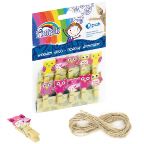 Medinė dekoracija SEGTUKAI SU PELĖDA Fiorello, 41x22mm, su virvele, 10vnt.