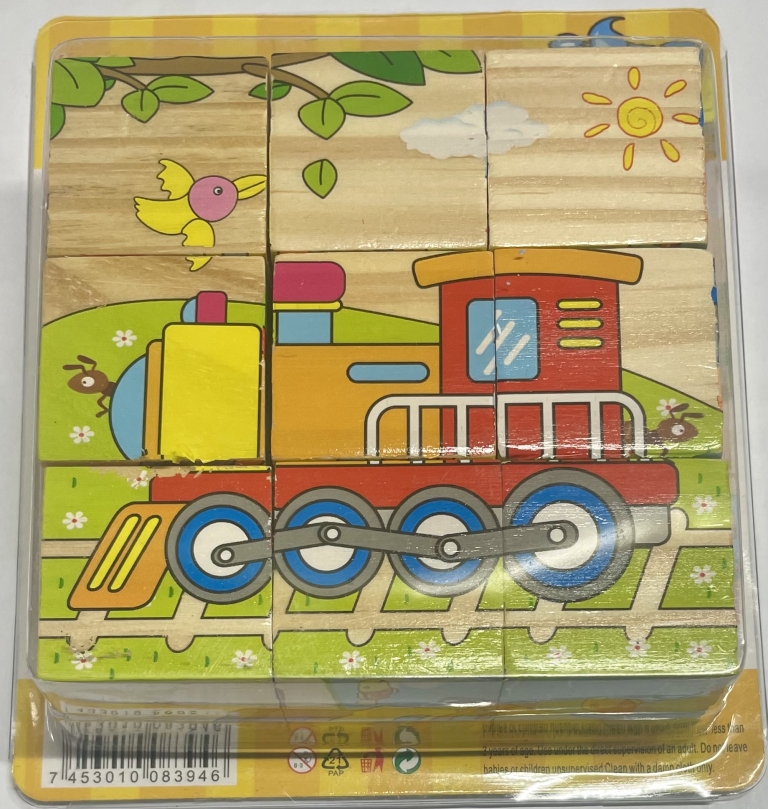 Medinė dėlionė Garvežys ,kvadr. kaladėlės, 9 det.