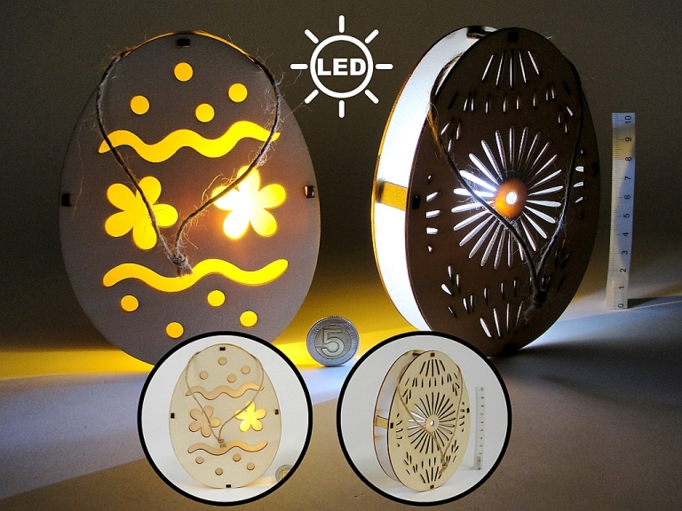 Medinė kiaušinio imitacija LED 11,5x15x3 cm