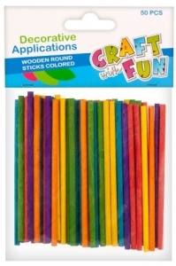 Medinės lazdelės dekoracijai, apvalios, 50 vnt., spalvoti