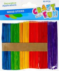 Medinės lazdelės dekoravimui, spalvotos 11,5 x 2 cm, 60 vnt.