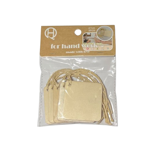 Mediniai kvadratai su virvute 4x7cm 5 vnt