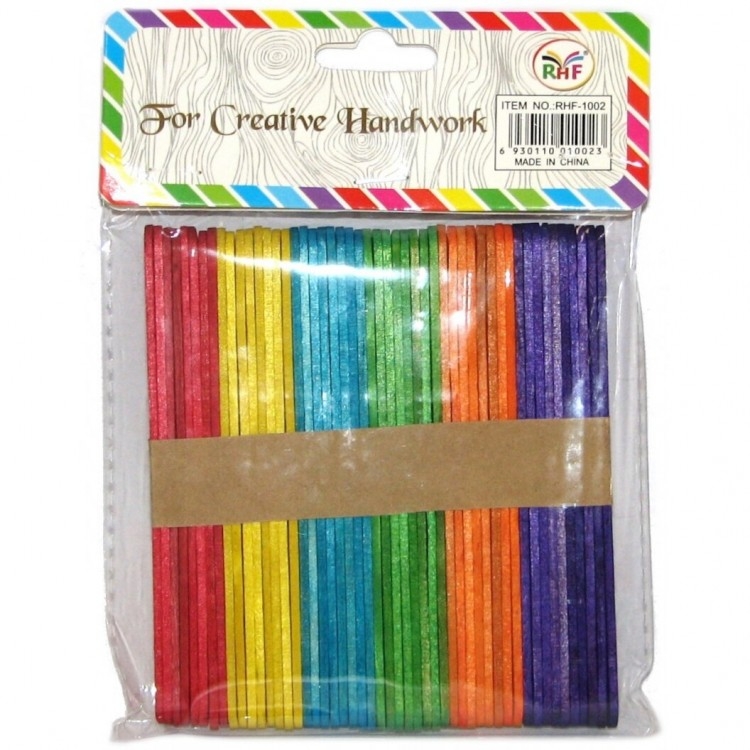 Mediniai pagaliukai rankdarbiams spalvoti MIX 114x10mm 50vnt.