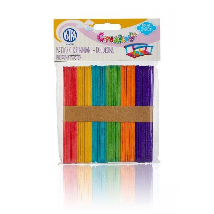 Mediniai pagaliukai rankdarbiams spalvoti MIX 114x10mm 50vnt. Astra