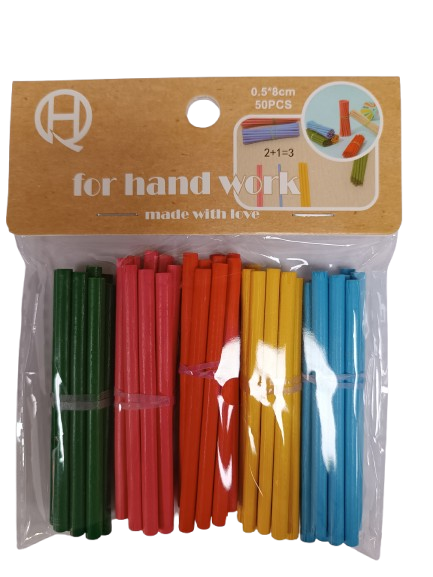 Mediniai Spalvoti Pagaliukai 0.5x8 cm - 50 vnt.