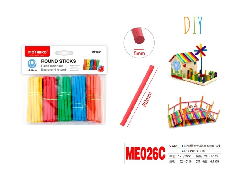 Mediniai pagaliukai spalvoti 5cm×80 mm, 100 vnt
