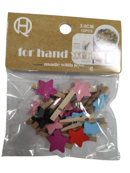 Mediniai segtukai su žvaigždutėmis 3.0cm. 12vnt