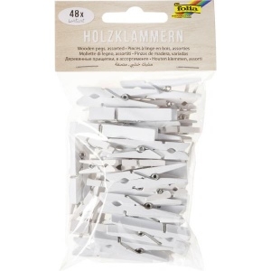 Medinių segtukų rinkinys, 3 dydžių, baltos spalvos, 48 vnt.
