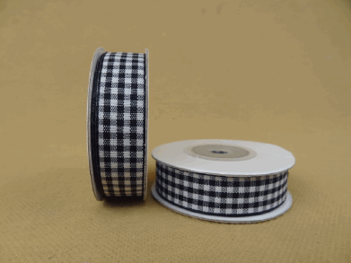 Medvilninė juostelė 15mm x9.14m (10Y) juoda baltaiskvadratėliais