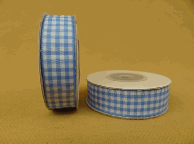 Medvilninė juostelė 15mm x9.14m (10Y) žydra baltais kvadratėliais