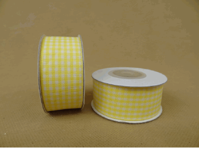 Medvilninė juostelė 25mm x9.14m (10Y) geltona baltais kvadratėliais