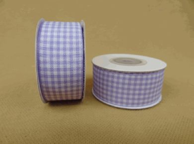 Medvilninė juostelė 25mm x9.14m (10Y) violetinė baltais kvadratėliais