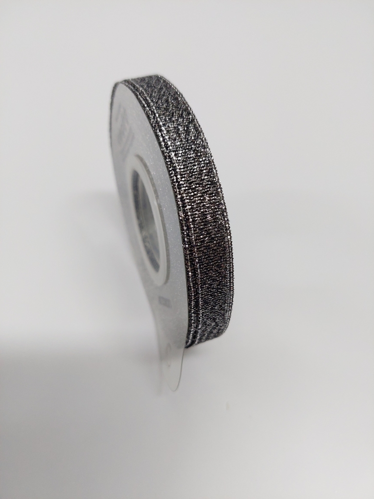 Medžiaginė juostelė 15mm x 22,5m pilka,balta su blizgučiu