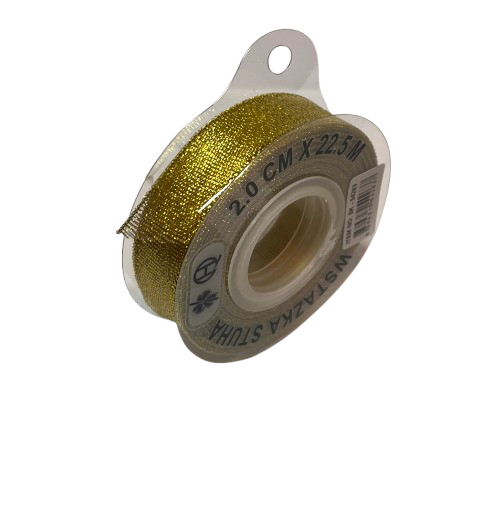 Medžiaginė juostelė 20mm x 22,5m auksinės spalvos