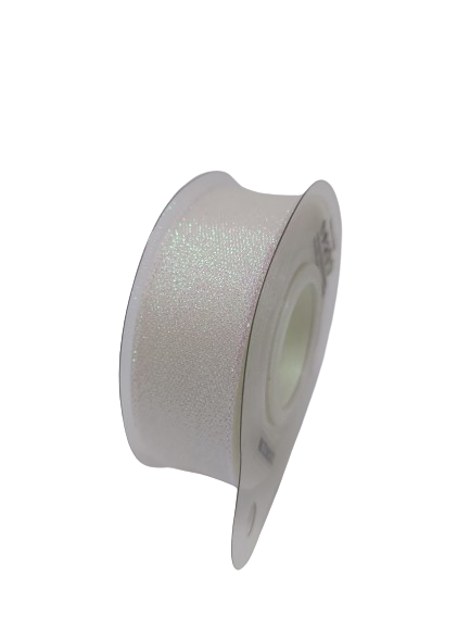 Medžiaginė juostelė 25mm x 22,5m pilka,balta su blizgučiais spl.