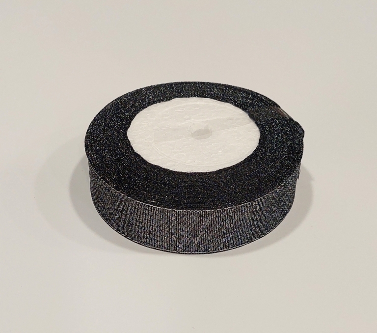 Medžiaginė juostelė, blizgi, tamsiai pilka, 2.5cm. (25Y)