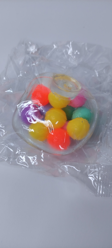 Minkštas kamuoliukas su rutuliukais viduje