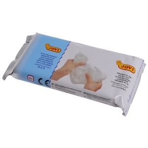 Molis JOVI. Lengvai minkomas, puikiai tinka kūrybiškumui ugdyti. Suformuotos figūrėlės savaime išdžiūsta ir sukietėja. Galima nuspalvinti. Netepa kaip tikras gamtinis molis. Kiekis 250 g. baltos spalvos.